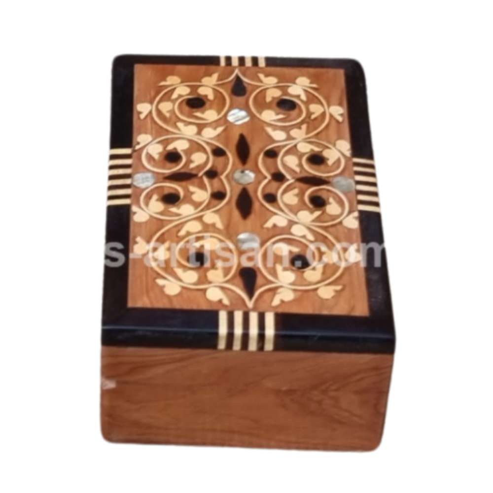 Cette boîte en bois est ornée de belle motifs décoratifs , elle s'ouvre et se ferme facilement grâce à des charnière robuste et résistant, elle est très pratique et esthétique ce qui l'aide de trouver sa place dans n'importe quelle maison.