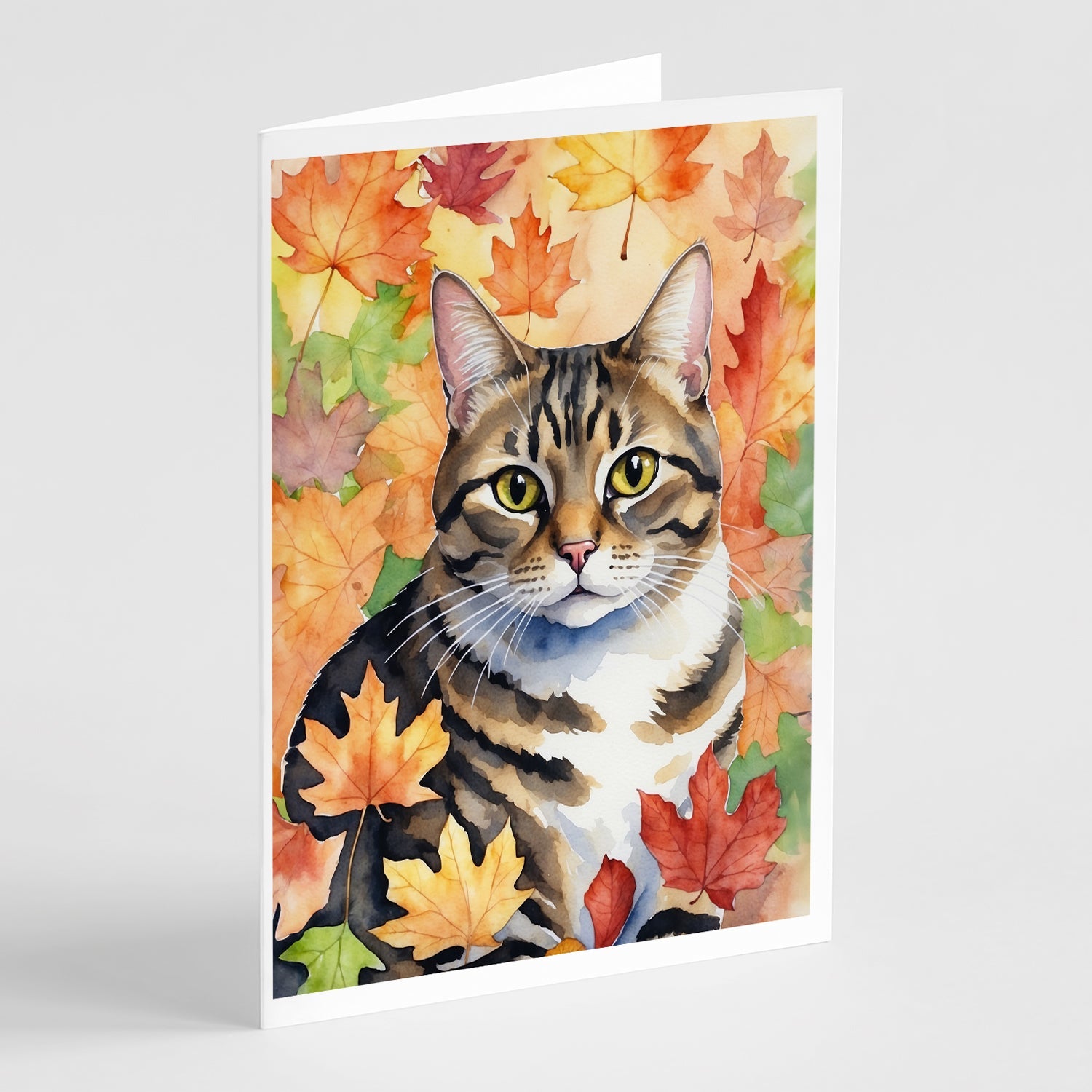 California Spangled Cat in Fall Leaves Greeting Cards Pack of 8